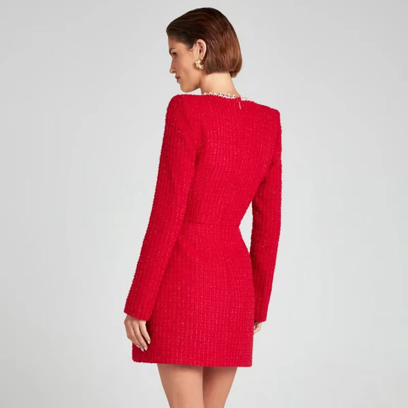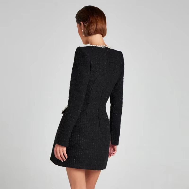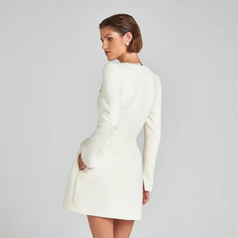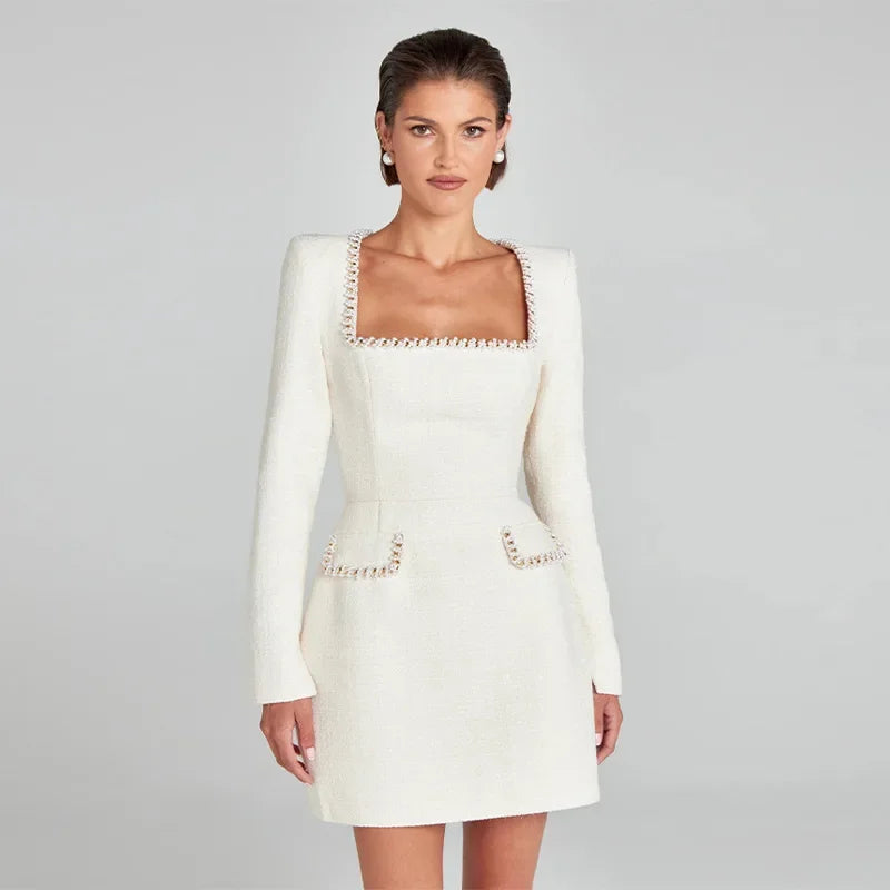 Natalie Zarif Kare Yaka Uzun Kollu Elbise